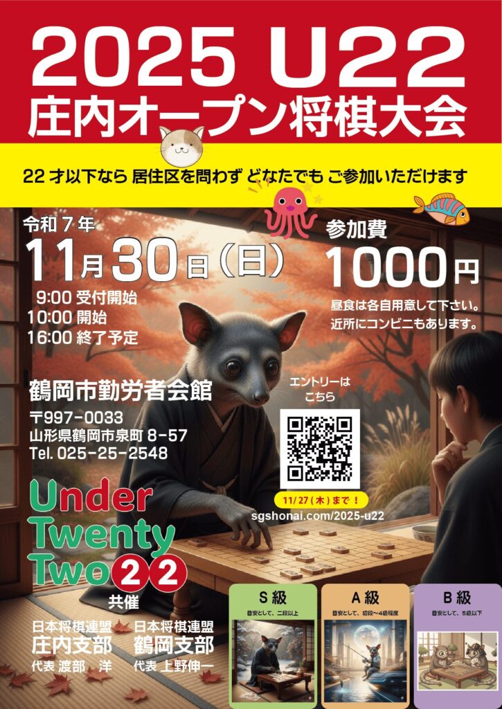 「2025 U22 庄内オープン将棋大会」は、次世代の才能が輝く舞台です。